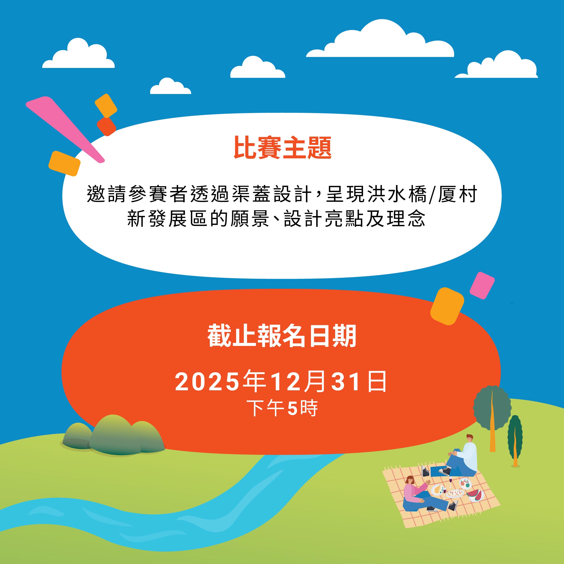 The “UnCover the Joy” Manhole Cover Design Competition invites the public to unleash creativity by showcasing the unique features of the Hung Shui Kiu/Ha Tsuen New Development Area (HSK/HT NDA) through innovative designs, co-creating this vibrant new community that is ideal for living, working, daily commuting and travelling.